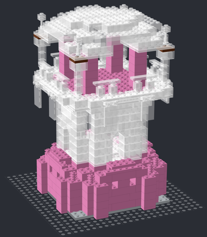그리고 아래는 최종 결과입니다. 사실 이 모델은 두번째 설계를 마친 뒤, 실제로 레고로 만들어보면서 문제가 되었던 부분을 수정한 거라, 형태는 두번째 것과 거의 동일합니다.