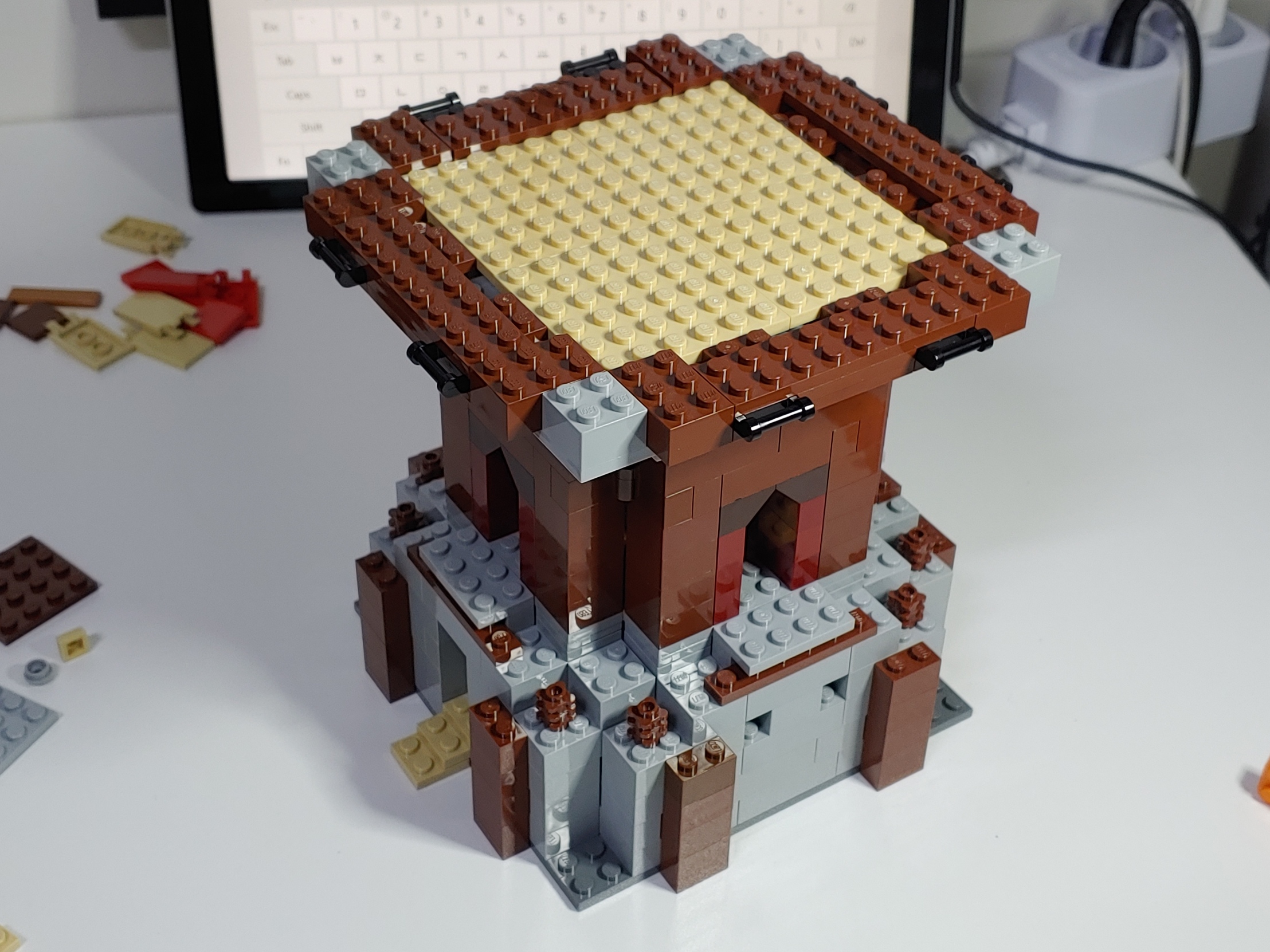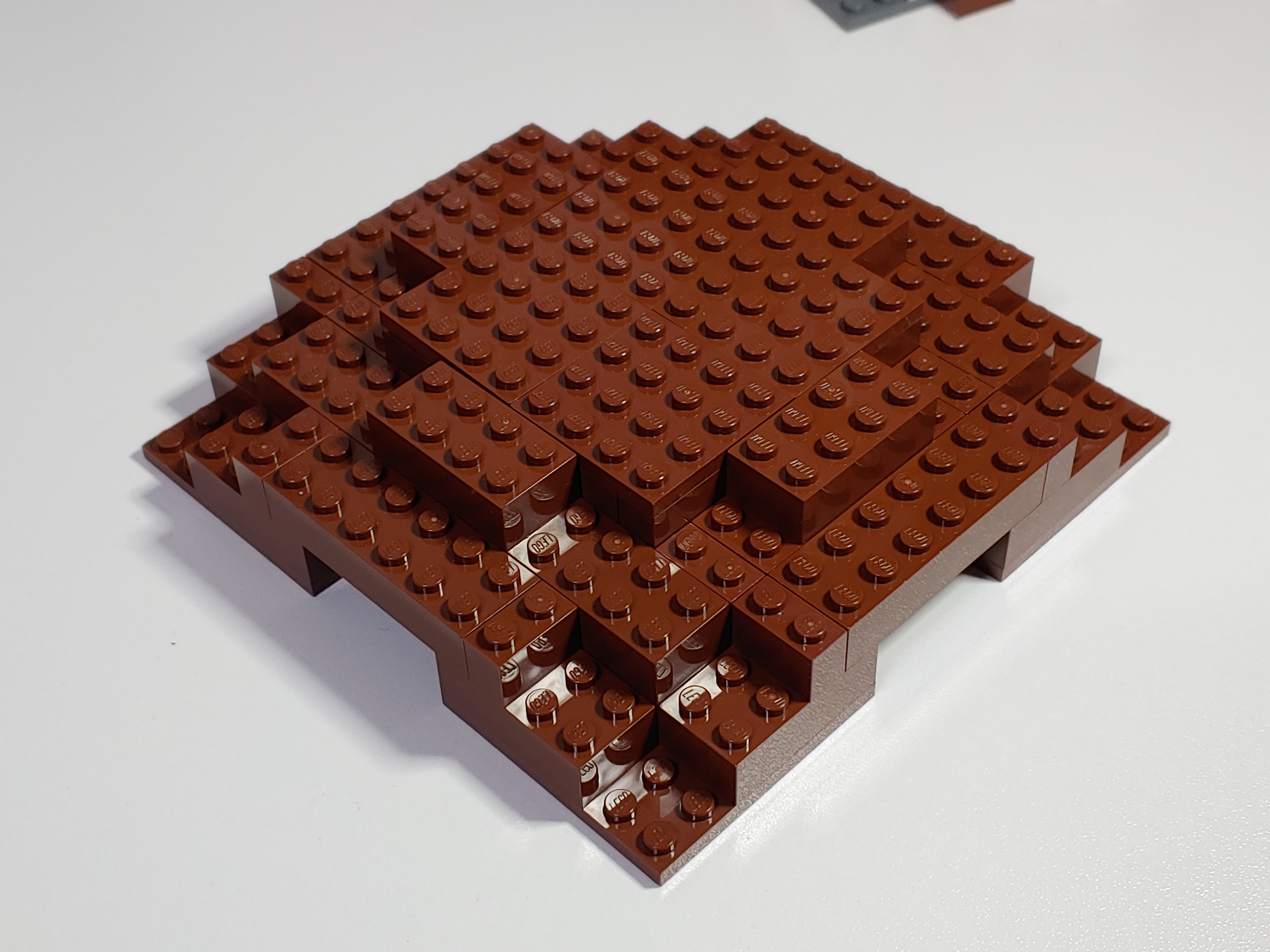 여러가지 종류의 저갈색 브릭/플레이트를 총 동원해서 지붕 구조를 만들어 갑니다. 2x8 브릭은 엄청 귀한지 하나도 없어서 2x6 브릭과 1x2 브릭 2개로 대체했네요. ㅠㅠ