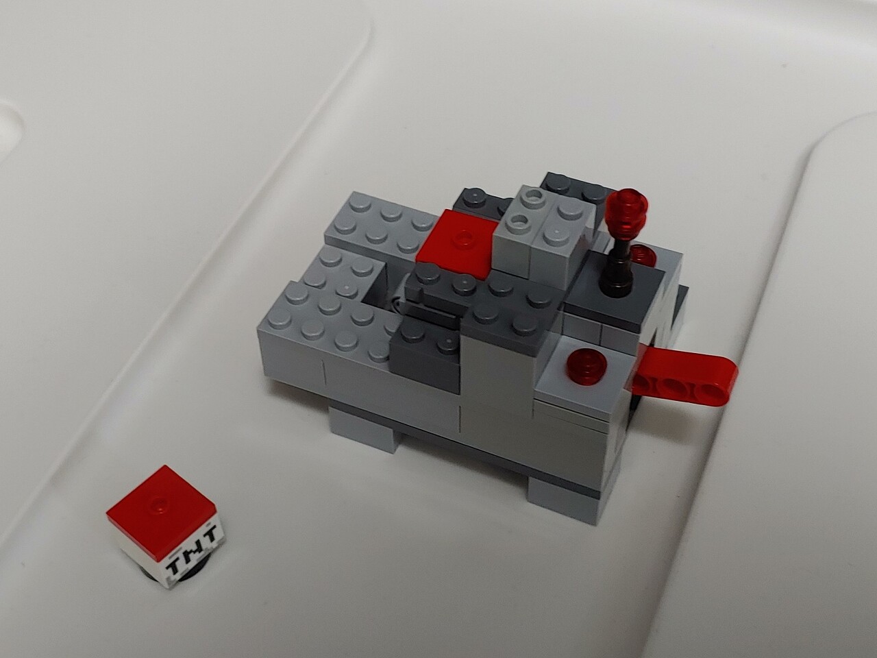 다음으로 TNT를 날릴 수 있는 구조물을 만들어 줍니다. 빨간 손잡이를 누르면 날라가도록 되어 있습니다. 아마도 위더가 보스몹이라서 죽이기가 쉽지 않으니, TNT로 공격하는 걸 표현하는 듯 싶습니다.