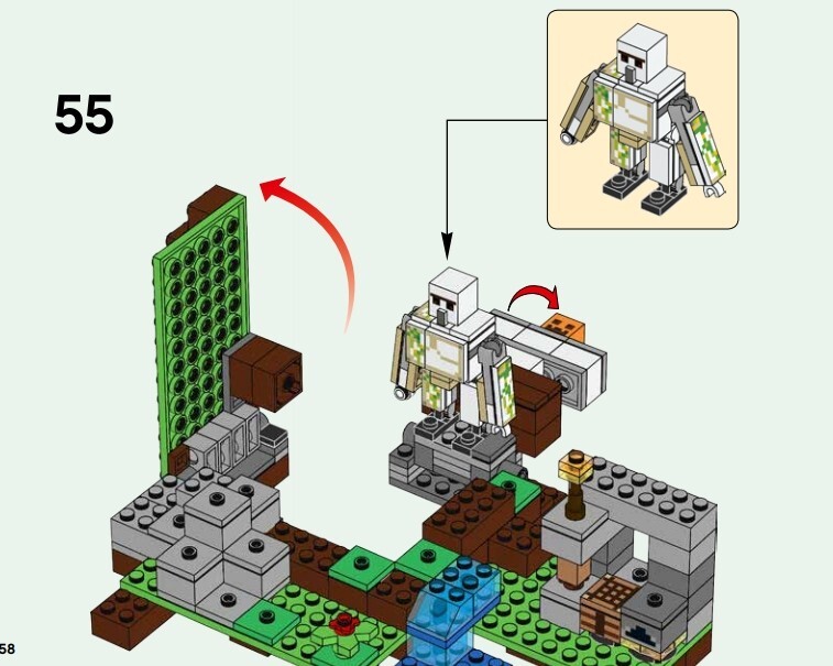 처음에 조립하기 시작했을 때 네더 요새 구조물이 뒤로 넘어가길래, 21123 아이언 골렘처럼 호박을 조립하여 아이언골렘하고 바꿔치기하는 그런 기믹이 있을까 해서 기대를 했는데, 아무 것도 없어서 실망이 컸네요. 21123은 부품이 208개이고, 이 제품은 318개이니, 충분히 구현할 수 있을 것 같은데 말입니다. ㅠㅠ